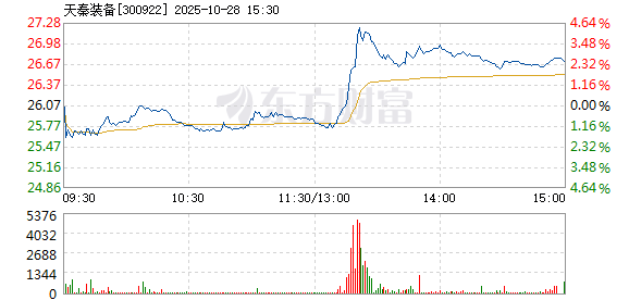 以下是天秦装备在北京时间10月28日13:20分盘口异动快照:10月28日,