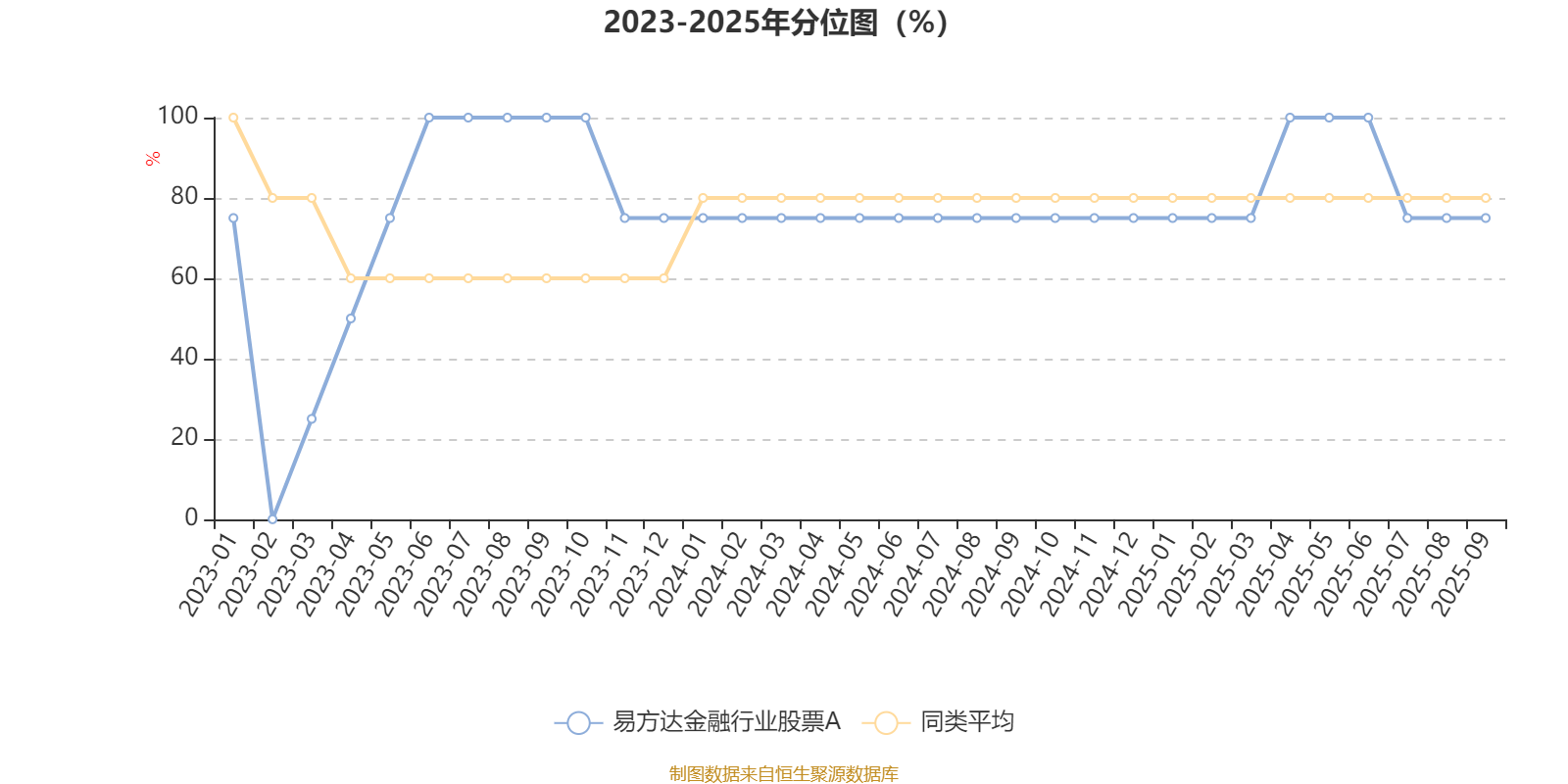 通过所选区间该基金净值增长率分位图,可以观察该基金与同类基金业绩比较情况。图为坐标原点到区间内某时点的净值增长率在同类基金中的分位数。