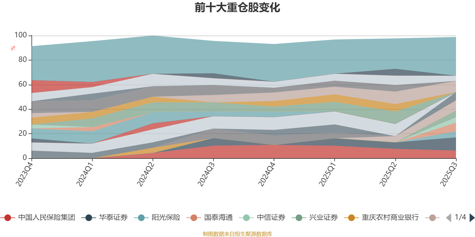 该基金持股集中度较高,近2年前十大重仓股集中度长期超过60%。截至2025年三季度末,基金十大重仓股分别是华泰证券、中国平安、渣打集团、国泰海通、香港交易所、中国人民保险集团、兴业证券、阳光保险、中信证券、中国太保。