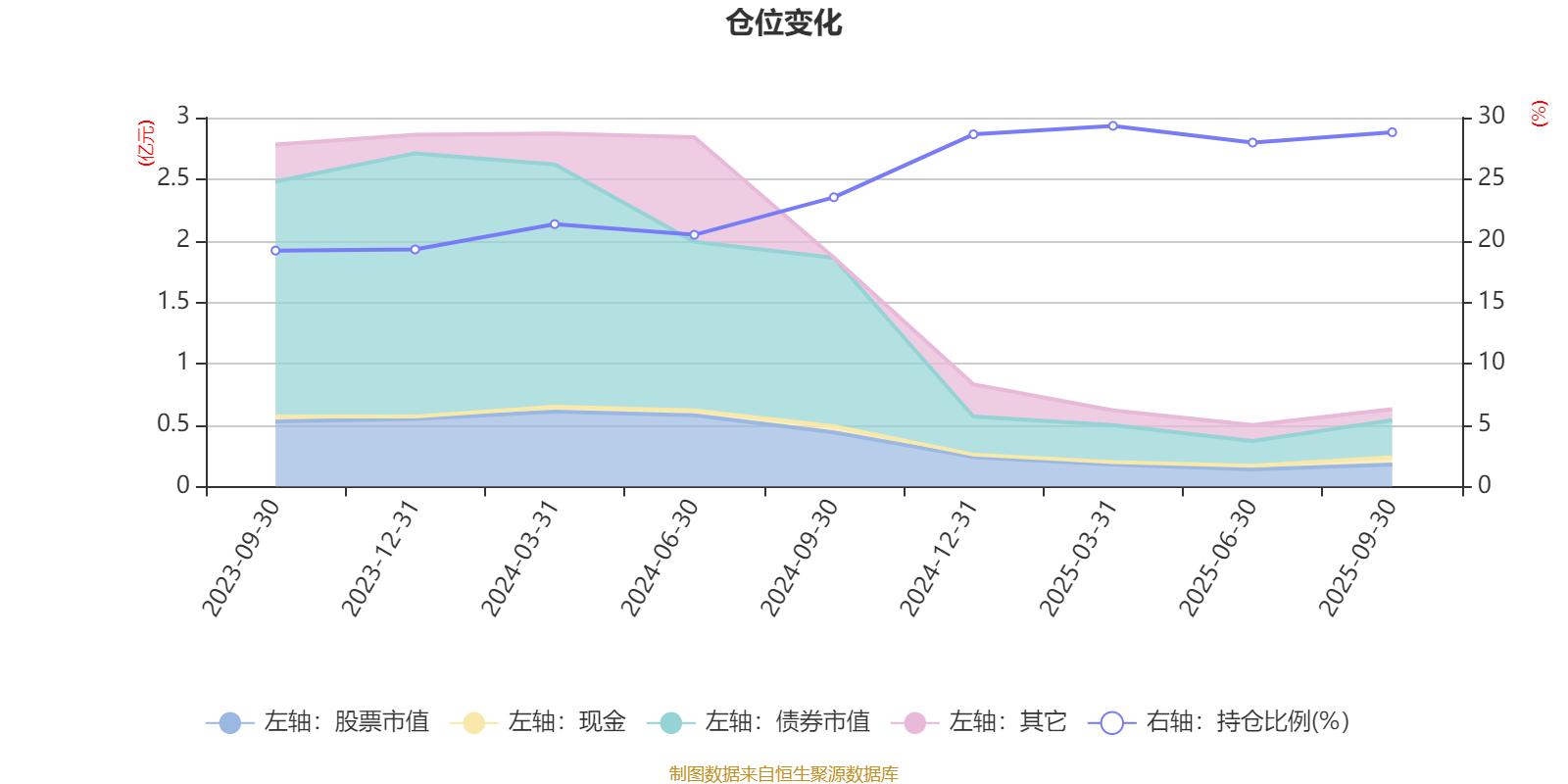 据定期报告数据统计,成立以来平均股票仓位为24.28%,同类平均为19.14%。2025年一季度末基金达到29.33%的最高仓位,2023年三季度末最低,为19.19%。