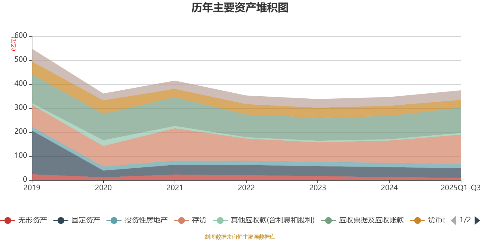 资产重大变化方面,截至2025年三季度末,公司存货较上年末增加31.67%,占公司总资产比重上升5.88个百分点;货币资金较上年末减少25.87%,占公司总资产比重下降3.88个百分点;固定资产较上年末减少3.79%,占公司总资产比重下降1.31个百分点;无形资产较上年末减少27.61%,占公司总资产比重下降1.14个百分点。