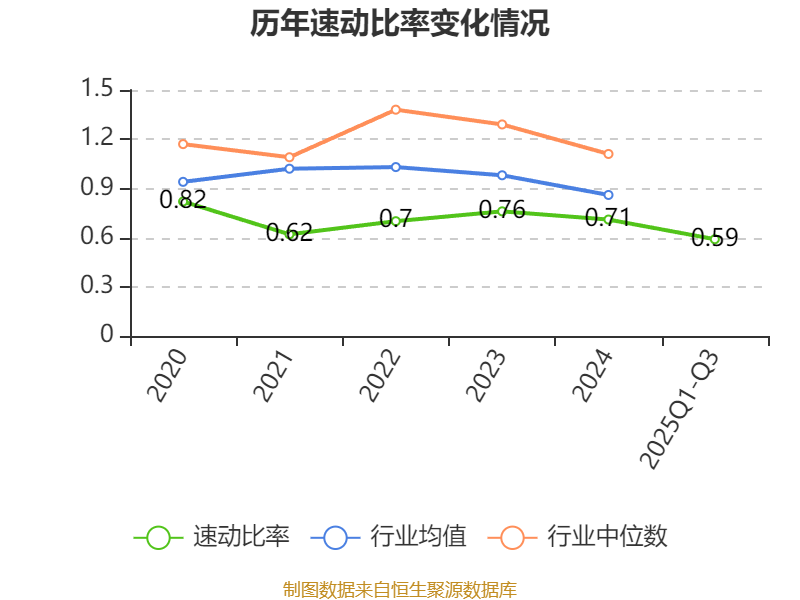 2025年前三季度,公司流动比率为1.04,速动比率为0.59。