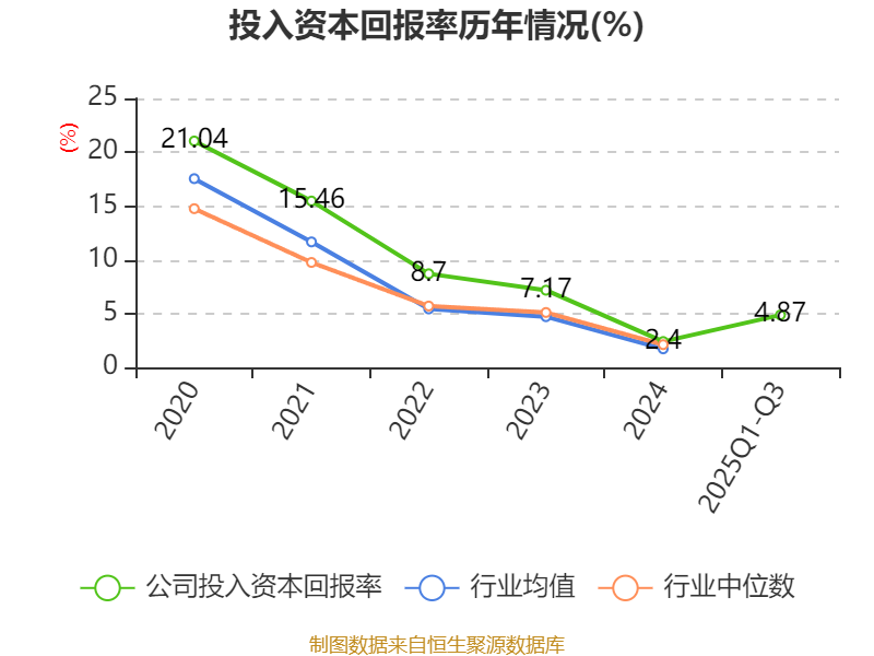 盈利能力方面, 2025年前三季度公司加权平均净资产收益率为4.94%,同比上升2.5个百分点。公司2025年前三季度投入资本回报率为4.87%,较上年同期上升2.74个百分点。