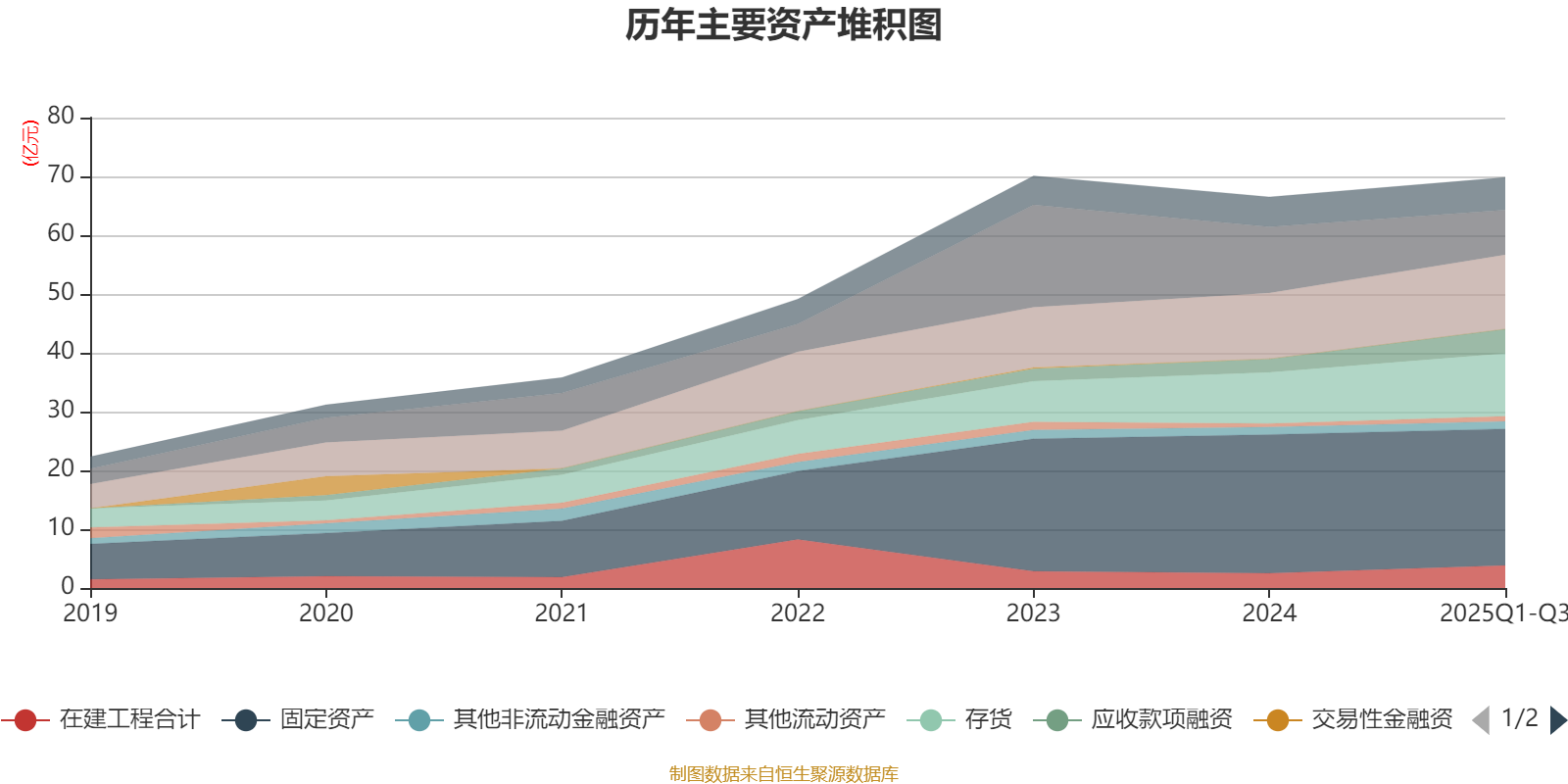 资产重大变化方面,截至2025年三季度末,公司货币资金较上年末减少32.29%,占公司总资产比重下降6.02个百分点;应收款项融资较上年末增加79.74%,占公司总资产比重上升2.46个百分点;存货较上年末增加22.67%,占公司总资产比重上升2.2个百分点;固定资产较上年末减少1.35%,占公司总资产比重下降2.14个百分点。
