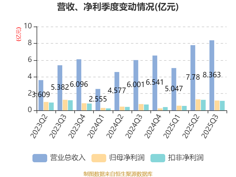 2025年前三季度,公司流动比率为6.83,速动比率为4.86。