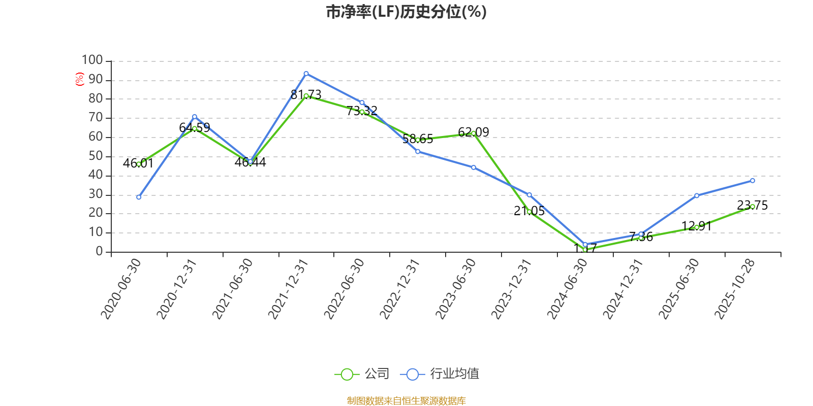 市盈率、市净率为负时,不显示当期分位数,会导致折线图中断。