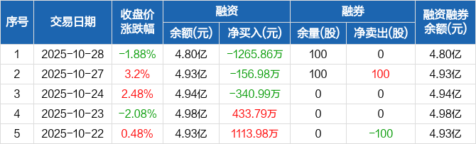 华兰股份融资融券信息显示,2025年10月28日融资净偿还1265.86万元;融资余额4.8亿元,较前一日下降2.57%。