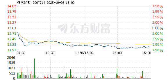 10月29日,杭汽轮B盘中跌幅达5%,截至9点40分,报12.32元,成交743.23万元,换手率0.14%。
