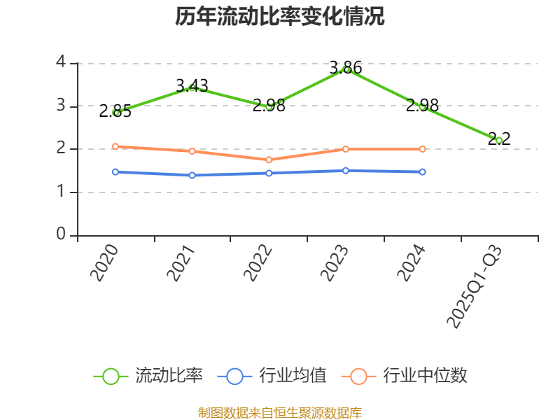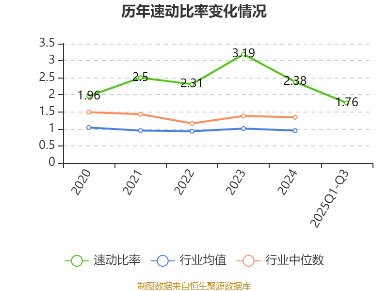 2025年前三季度,公司流动比率为2.2,速动比率为1.76。