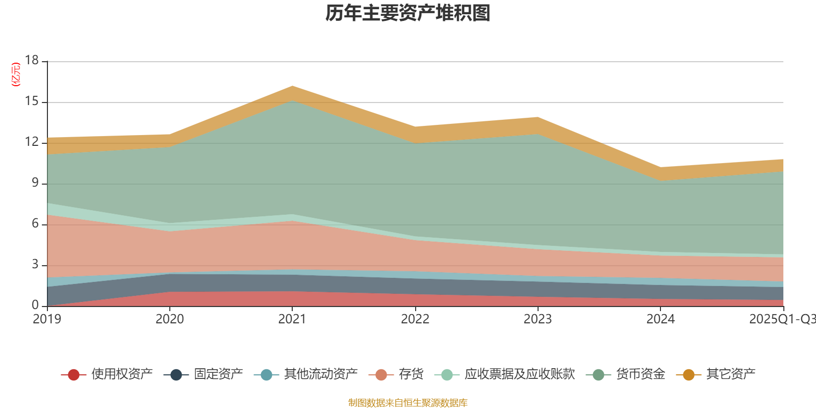 资产重大变化方面,截至2025年三季度末,公司货币资金较上年末增加16.69%,占公司总资产比重上升5.27个百分点;其他流动资产较上年末减少21.4%,占公司总资产比重下降1.32个百分点;固定资产较上年末减少6.58%,占公司总资产比重下降1.17个百分点;使用权资产较上年末减少15.19%,占公司总资产比重下降1个百分点。
