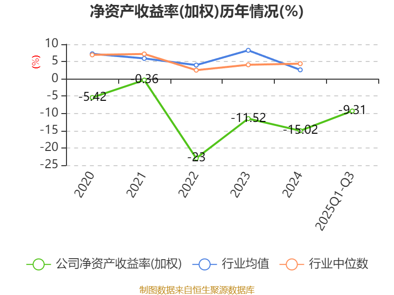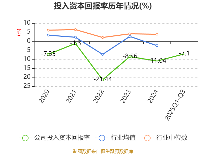 盈利能力方面, 2025年前三季度公司加权平均净资产收益率为-9.31%,同比上升0.62个百分点。公司2025年前三季度投入资本回报率为-7.1%,较上年同期上升0.25个百分点。