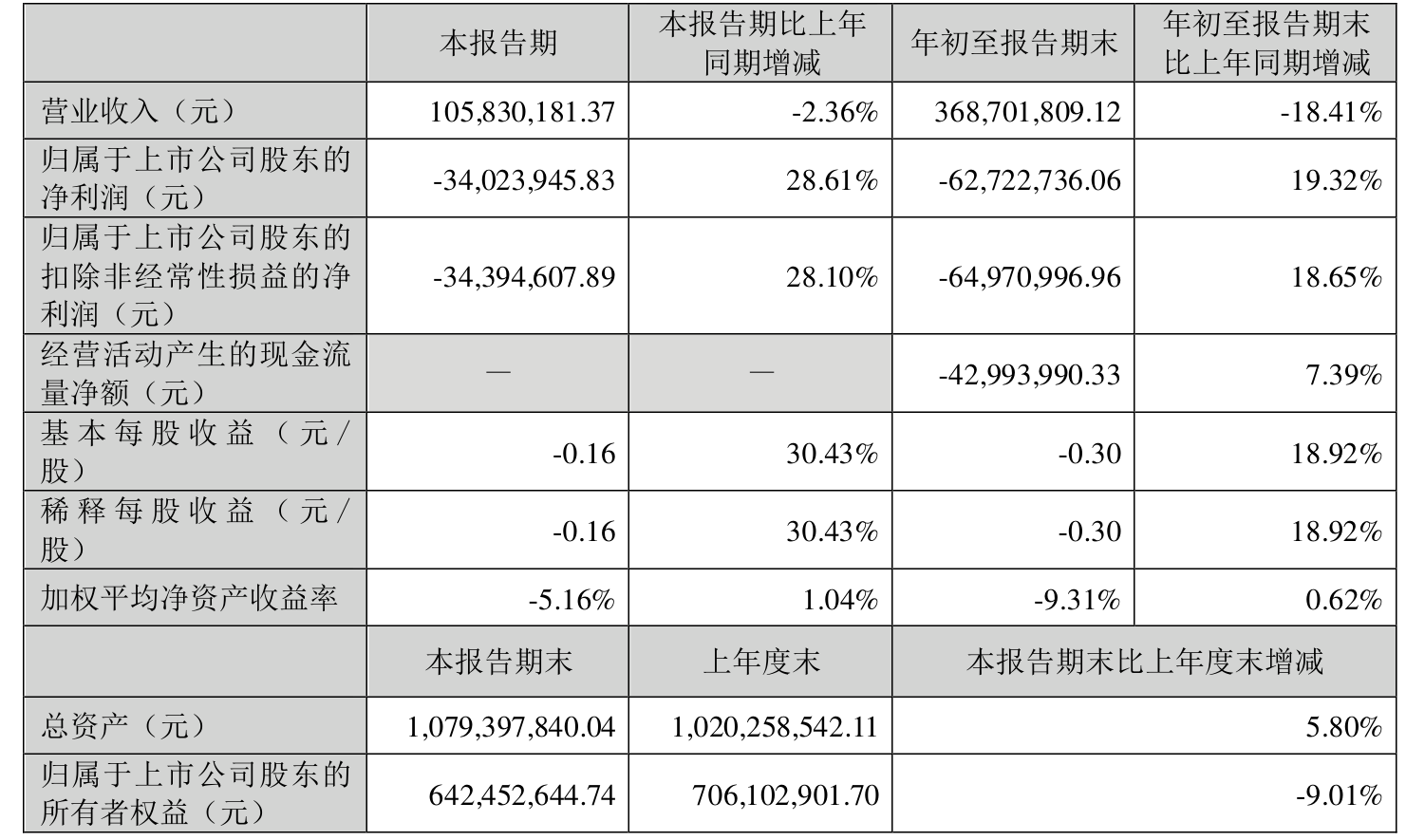 中证智能财讯安奈儿(002875)10月29日披露2025年第三季度报告。前三季度公司实现营业总收入3.69亿元,同比下降18.41%;归母净利润亏损6272.27万元,上年同期亏损7774.15万元;扣非净利润亏损6497.1万元,上年同期亏损7986.22万元;经营活动产生的现金流量净额为-4299.4万元,上年同期为-4642.53万元;报告期内,安奈儿基本每股收益为-0.3元,加权平均净资产收益率为-9.31%。