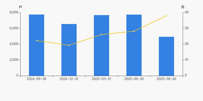2024年9月30日至今,公司股东户数显著下降,区间跌幅为36.38%。2024年9月30日至2025年9月30日区间股价上涨70.48%。