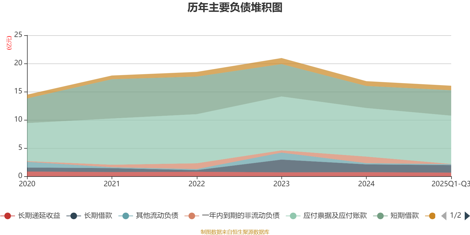 负债重大变化方面,截至2025年三季度末,公司一年内到期的非流动负债较上年末减少96.71%,占公司总资产比重下降3.04个百分点;短期借款较上年末增加15.43%,占公司总资产比重上升1.52个百分点;应付票据及应付账款较上年末减少0.56%,占公司总资产比重下降0.35个百分点;长期递延收益较上年末减少11.95%,占公司总资产比重下降0.25个百分点。