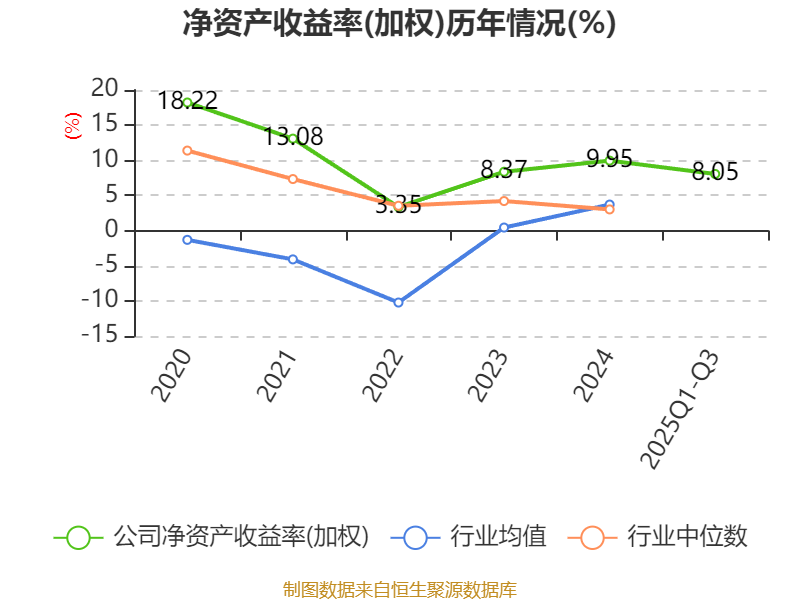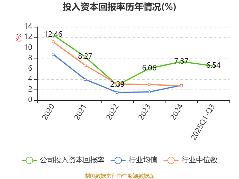 盈利能力方面, 2025年前三季度公司加权平均净资产收益率为8.05%,同比下降0.9个百分点。公司2025年前三季度投入资本回报率为6.54%,较上年同期下降0.08个百分点。