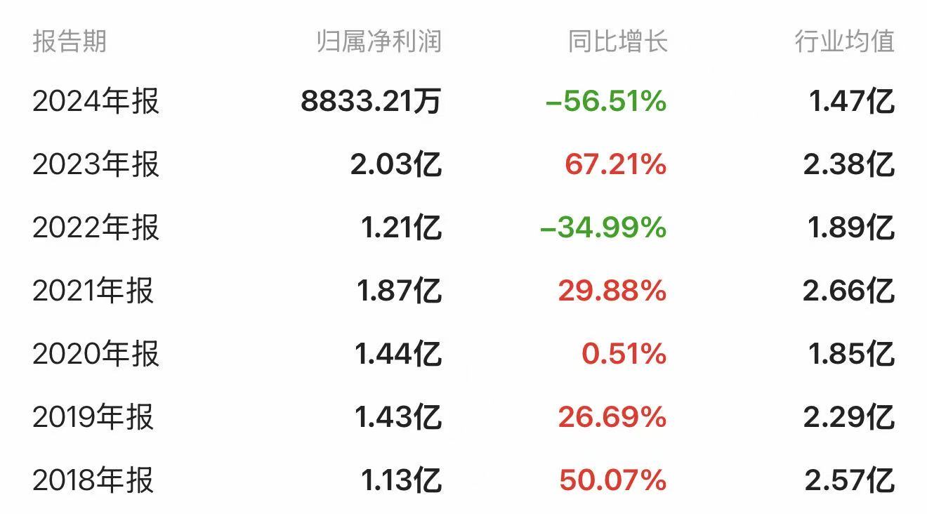 拉长时间线看,乔治白自2018年净利润突破亿元大关之后,便整体处于增长趋势。2024年净利润骤降56%,创下近7年新低。