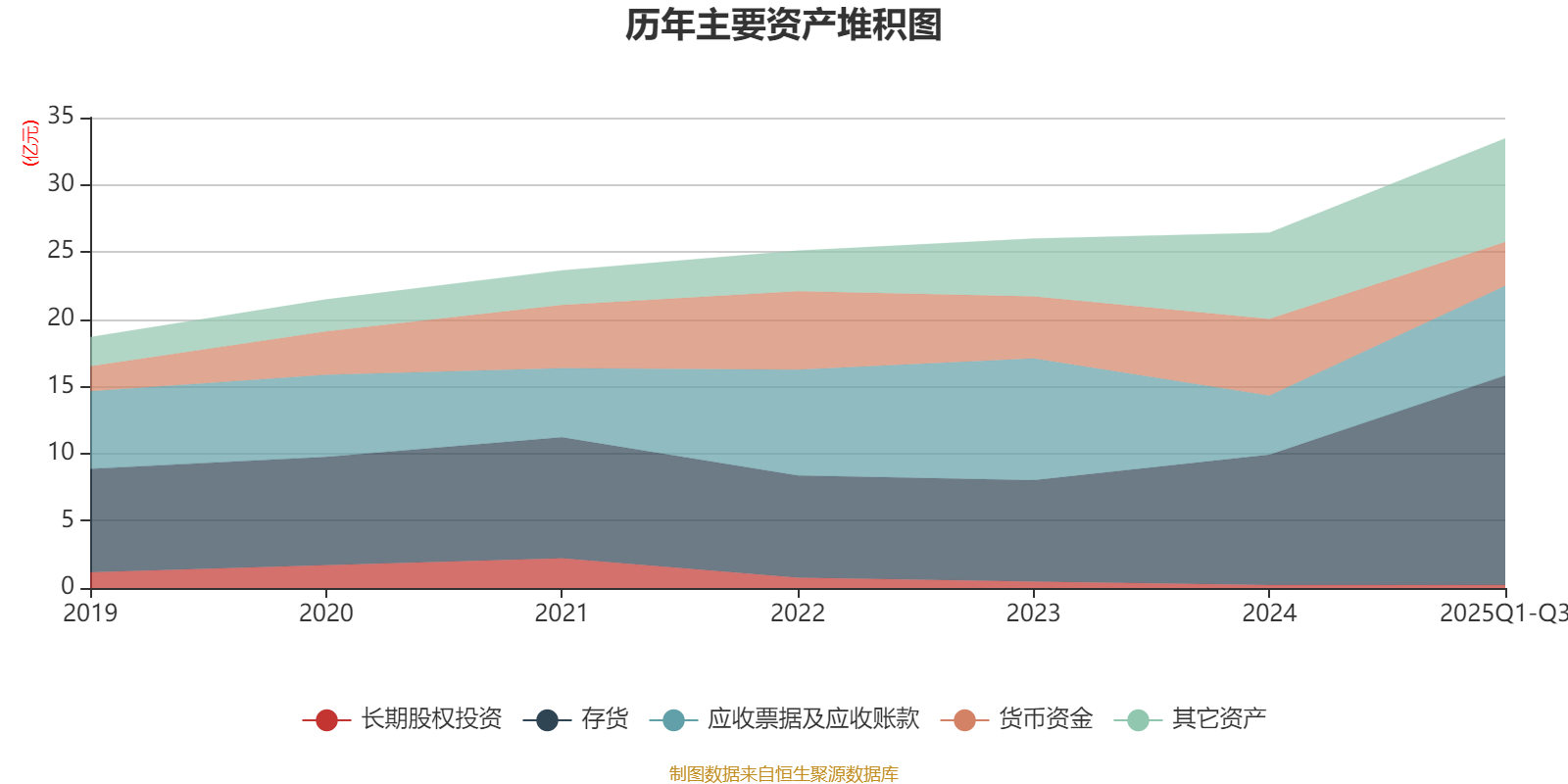 资产重大变化方面,截至2025年三季度末,公司货币资金较上年末减少42.88%,占公司总资产比重下降11.82个百分点;存货较上年末增加60.68%,占公司总资产比重上升9.9个百分点;应收票据及应收账款较上年末增加51.28%,占公司总资产比重上升3.26个百分点;其他流动资产较上年末减少20.92%,占公司总资产比重下降1.6个百分点。