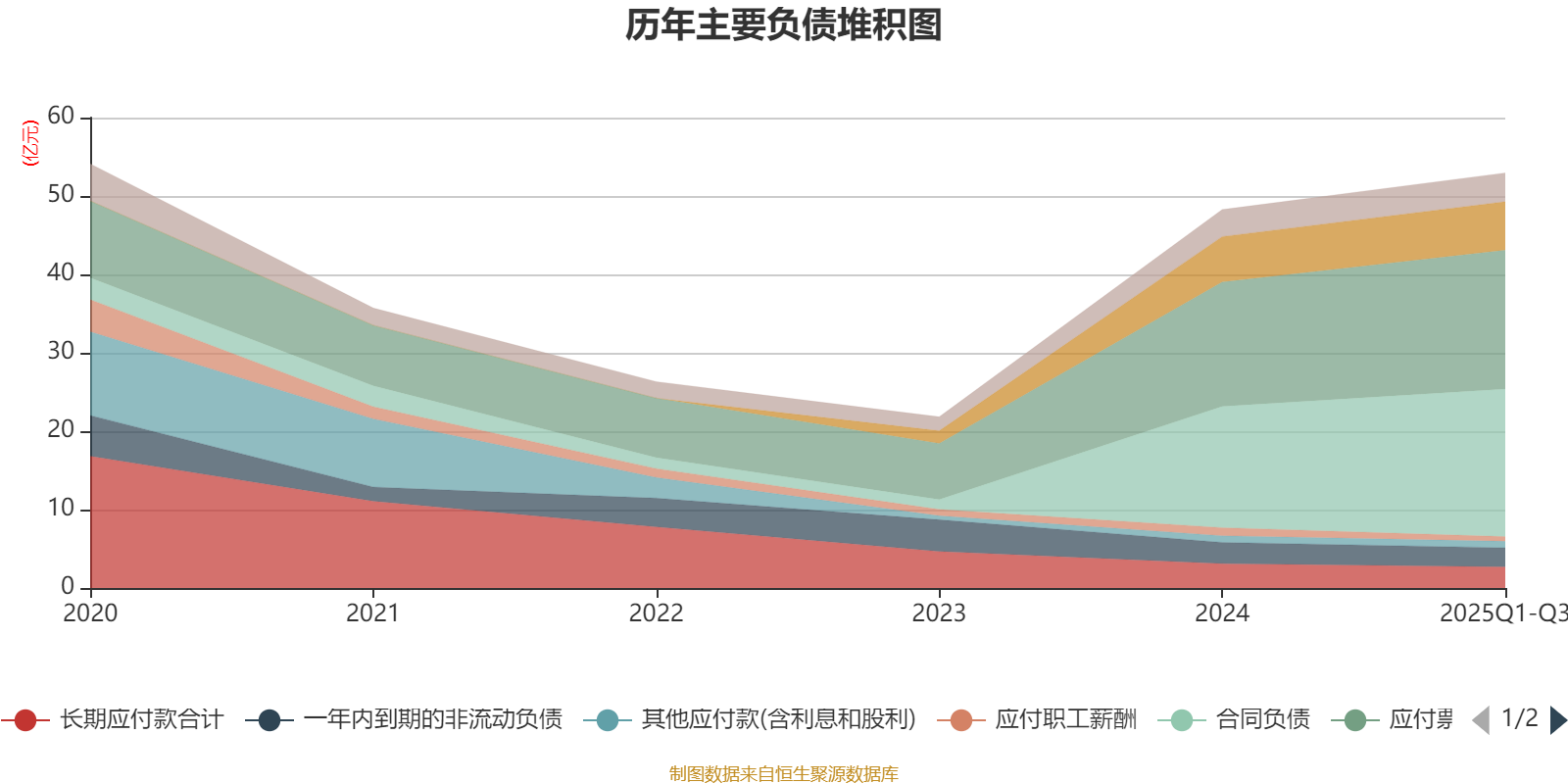 负债重大变化方面,截至2025年三季度末,公司应付票据及应付账款较上年末增加11.8%,占公司总资产比重下降2.89个百分点;长期应付款合计较上年末减少13.74%,占公司总资产比重下降1.39个百分点;短期借款较上年末增加6.63%,占公司总资产比重下降1.37个百分点;合同负债较上年末增加21.67%,占公司总资产比重下降1.23个百分点。