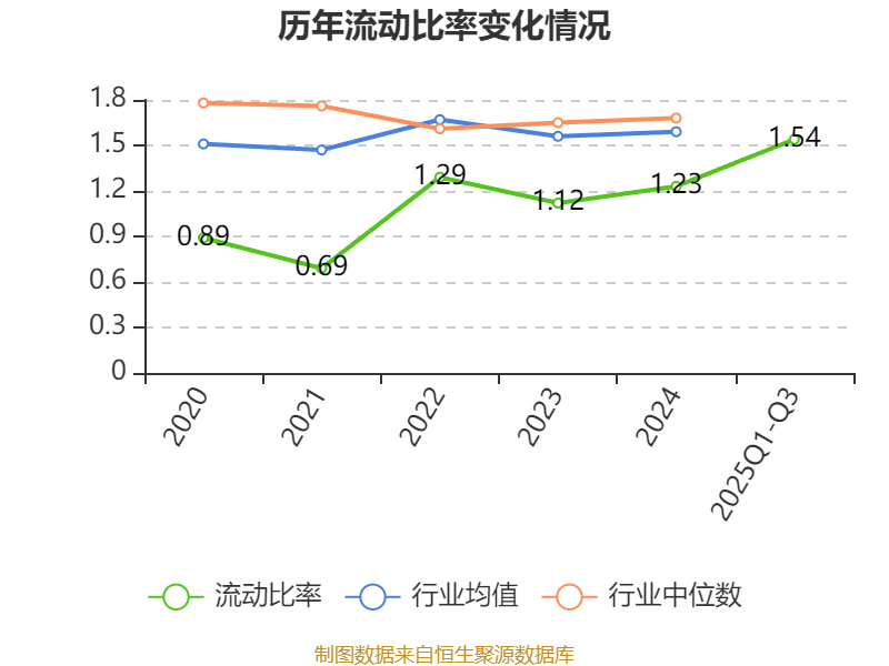 2025年前三季度,公司流动比率为1.54,速动比率为0.99。