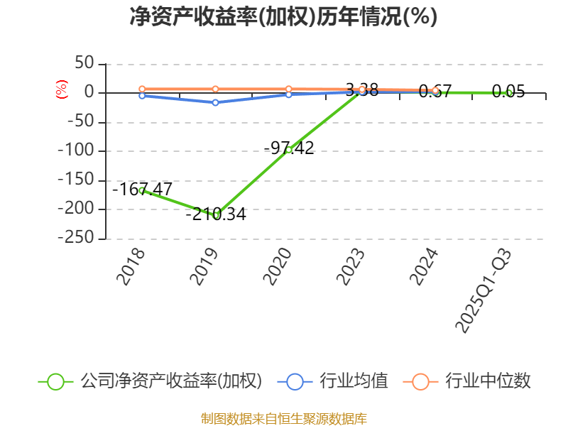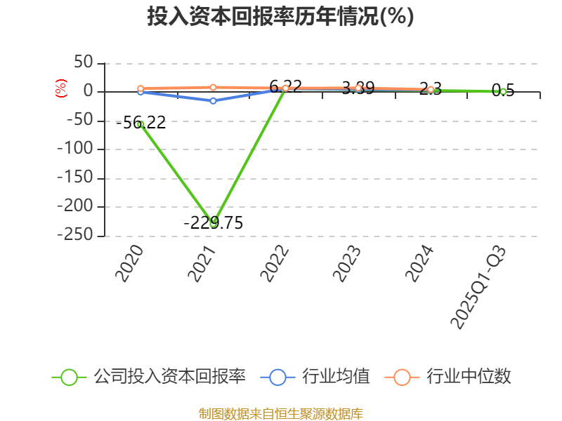 盈利能力方面, 2025年前三季度公司加权平均净资产收益率为0.05%,同比上升2.91个百分点。公司2025年前三季度投入资本回报率为0.5%,较上年同期上升6.51个百分点。