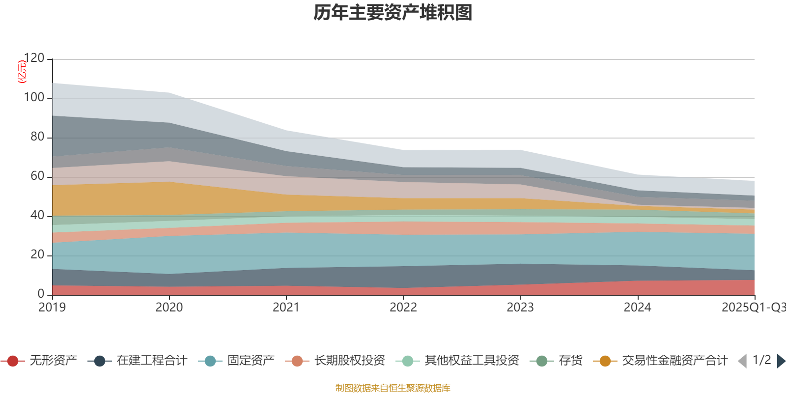 资产重大变化方面,截至2025年三季度末,公司在建工程合计较上年末减少36.59%,占公司总资产比重下降4.2个百分点;固定资产较上年末增加8.35%,占公司总资产比重上升4.03个百分点;无形资产较上年末增加5.82%,占公司总资产比重上升1.36个百分点;存货较上年末减少22.02%,占公司总资产比重下降1.08个百分点。