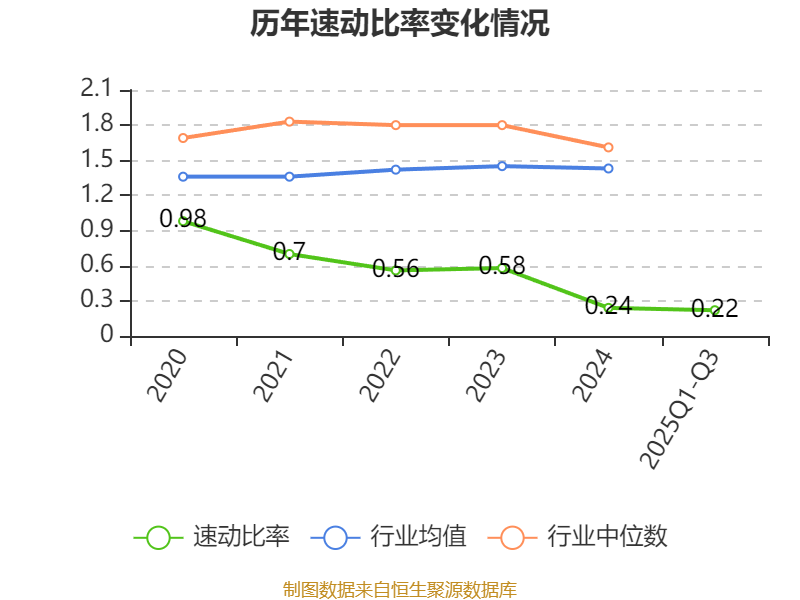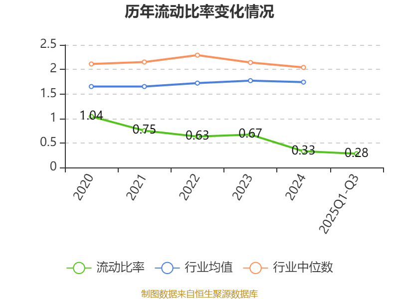 2025年前三季度,公司流动比率为0.28,速动比率为0.22。