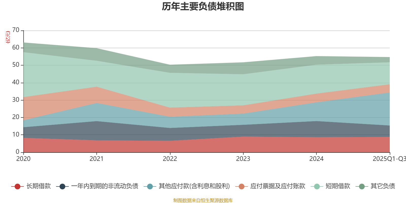 负债重大变化方面,截至2025年三季度末,公司其他应付款(含利息和股利)较上年末增加75.84%,占公司总资产比重上升15.13个百分点;短期借款较上年末减少24.04%,占公司总资产比重下降5.38个百分点;一年内到期的非流动负债较上年末减少29.44%,占公司总资产比重下降3.86个百分点;长期应付款合计较上年末减少83.26%,占公司总资产比重下降2.12个百分点。
