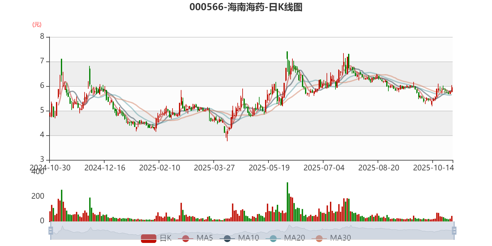 中证智能财讯海南海药(000566)10月30日披露2025年第三季度报告。前三季度公司实现营业总收入6.4亿元,同比下降20.51%;归母净利润亏损2.42亿元,上年同期亏损2.95亿元;扣非净利润亏损2.72亿元,上年同期亏损2.5亿元;经营活动产生的现金流量净额为2587.37万元,上年同期为-6726.27万元;报告期内,海南海药基本每股收益为-0.1868元,加权平均净资产收益率为-60.17%。