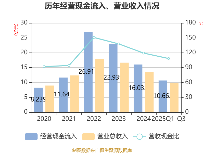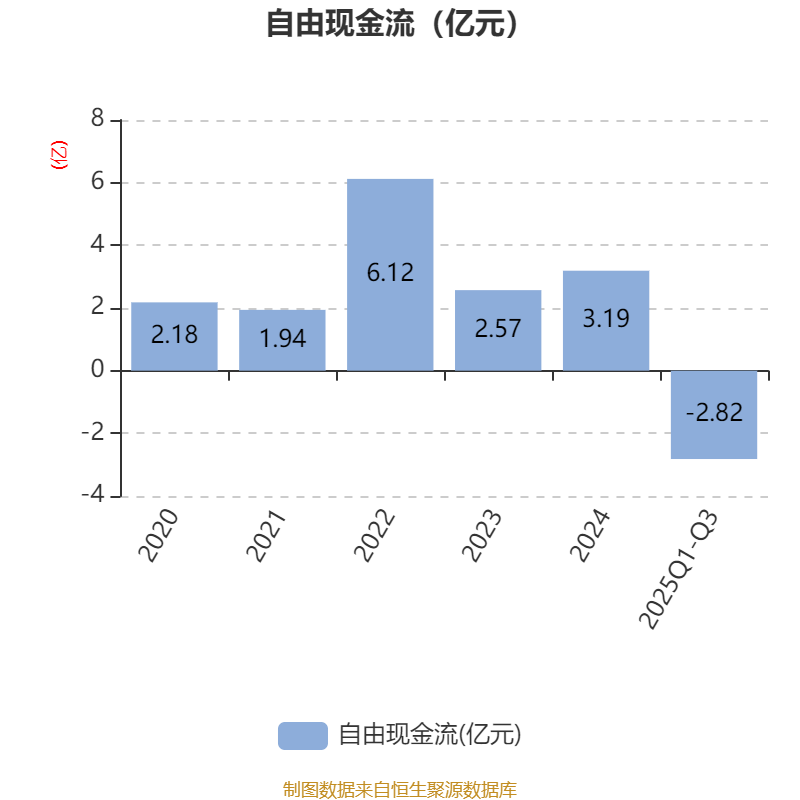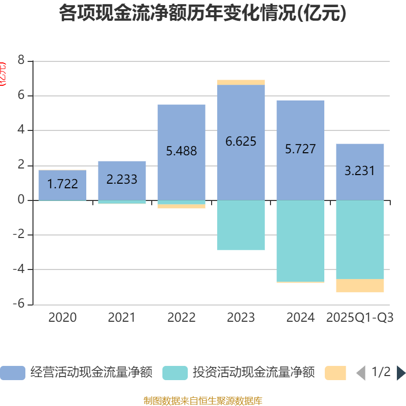 2025年前三季度,公司经营活动现金流净额为3.23亿元,同比下降37.84%;筹资活动现金流净额-7557.53万元,同比减少7301.61万元;投资活动现金流净额-4.54亿元,上年同期为-2.52亿元。