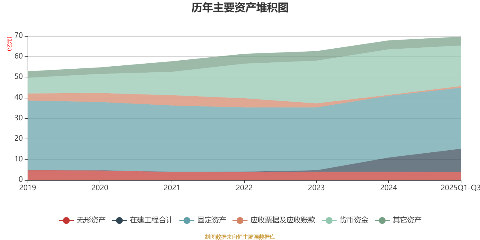 资产重大变化方面,截至2025年三季度末,公司在建工程合计较上年末增加62.33%,占公司总资产比重上升5.92个百分点;货币资金较上年末减少10.74%,占公司总资产比重下降4.26个百分点;固定资产较上年末减少0.89%,占公司总资产比重下降1.52个百分点;应收票据及应收账款较上年末增加68.18%,占公司总资产比重上升0.42个百分点。