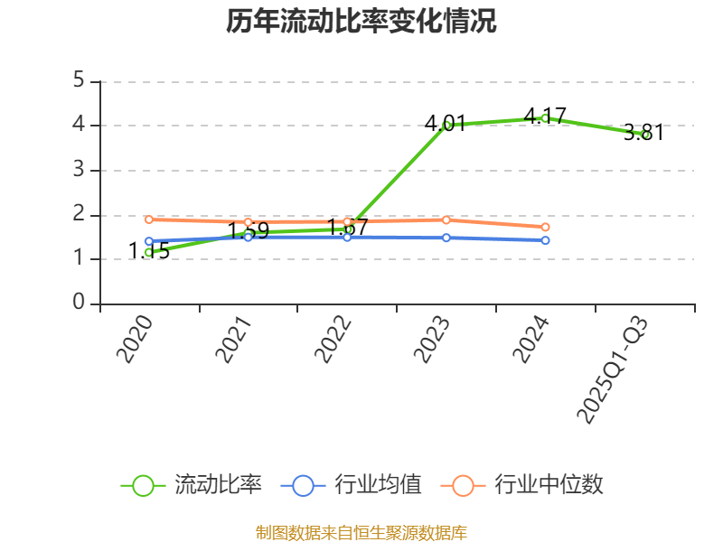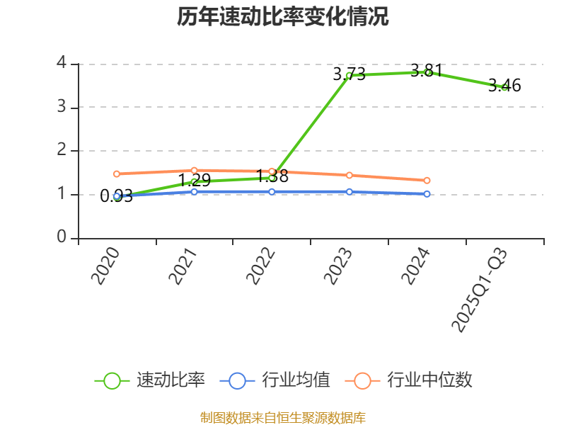 2025年前三季度,公司流动比率为3.81,速动比率为3.46。