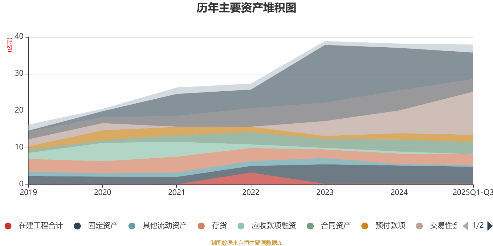 资产重大变化方面,截至2025年三季度末,公司交易性金融资产合计较上年末增加89.15%,占公司总资产比重上升14.66个百分点;货币资金较上年末减少37.37%,占公司总资产比重下降11.12个百分点;应收票据及应收账款较上年末减少37.84%,占公司总资产比重下降5.36个百分点;长期应收款较上年末增加3873.64%,占公司总资产比重上升2.48个百分点。