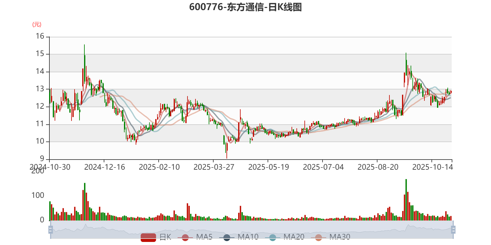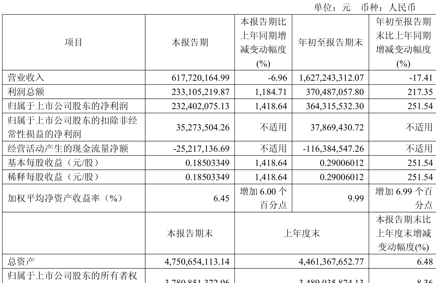 中证智能财讯东方通信(600776)10月30日披露2025年第三季度报告。前三季度公司实现营业总收入16.27亿元,同比下降17.41%;归母净利润3.64亿元,同比增长251.54%;扣非净利润3786.94万元,同比扭亏;经营活动产生的现金流量净额为-1.16亿元,上年同期为-1.76亿元;报告期内,东方通信基本每股收益为0.2901元,加权平均净资产收益率为9.99%。