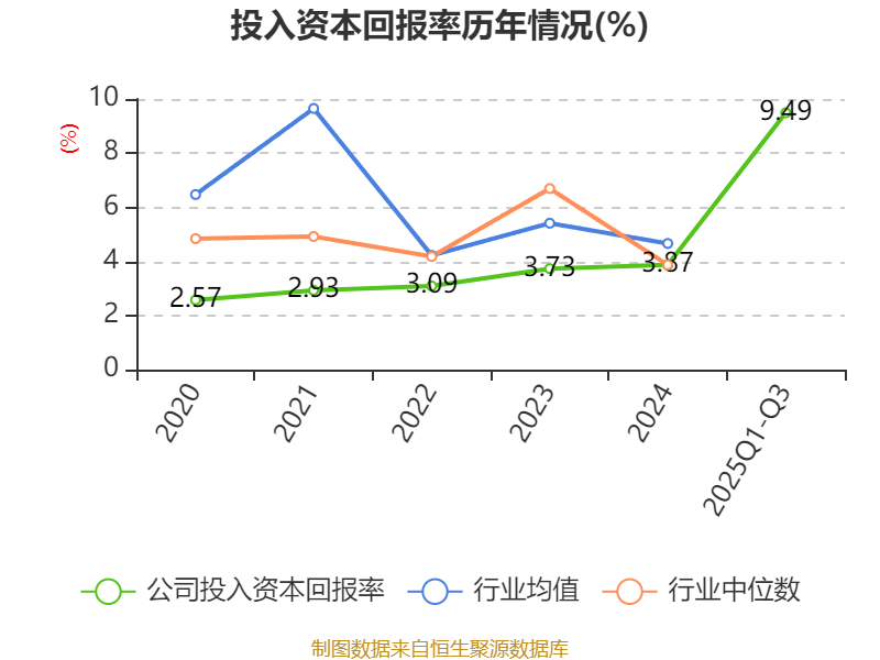盈利能力方面, 2025年前三季度公司加权平均净资产收益率为9.99%,同比上升6.99个百分点。公司2025年前三季度投入资本回报率为9.49%,较上年同期上升6.71个百分点。