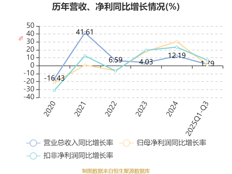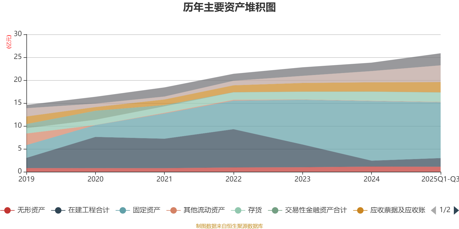 资产重大变化方面,截至2025年三季度末,公司固定资产较上年末减少6.18%,占公司总资产比重下降7.44个百分点;货币资金较上年末增加48.6%,占公司总资产比重上升3.83个百分点;在建工程合计较上年末增加45.74%,占公司总资产比重上升1.85个百分点;其他非流动金融资产较上年末增加41.05%,占公司总资产比重上升1.05个百分点。