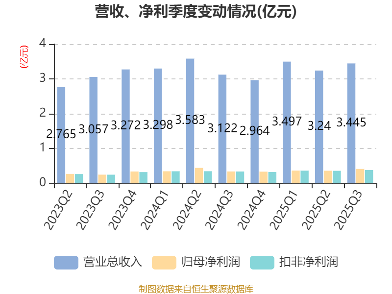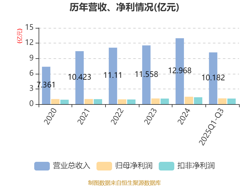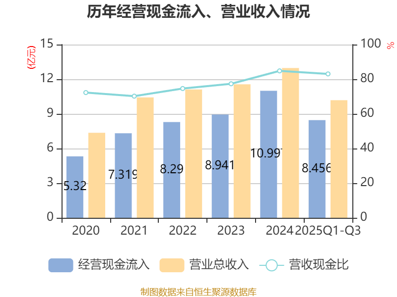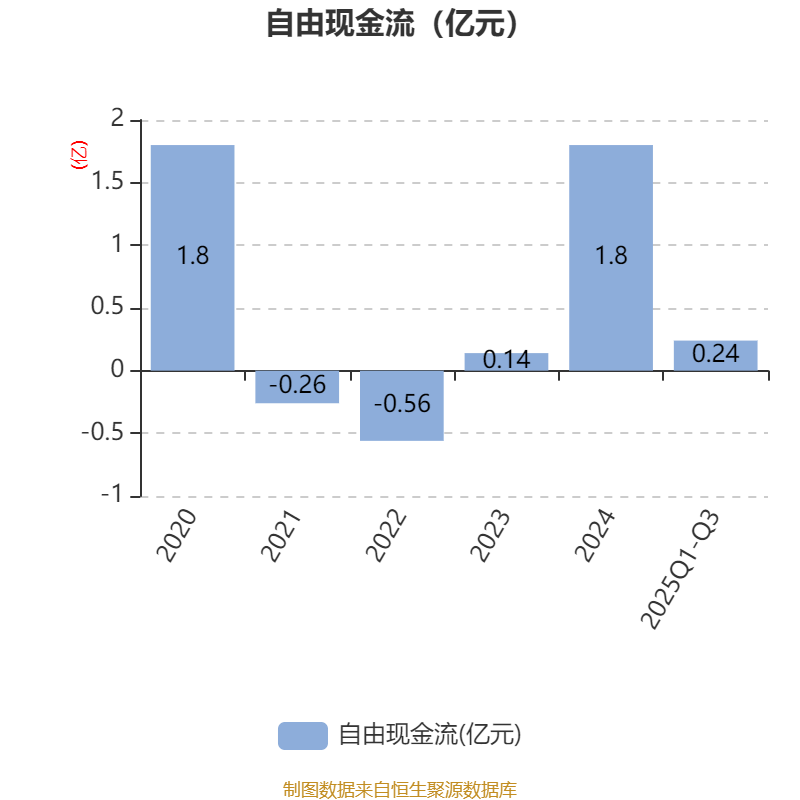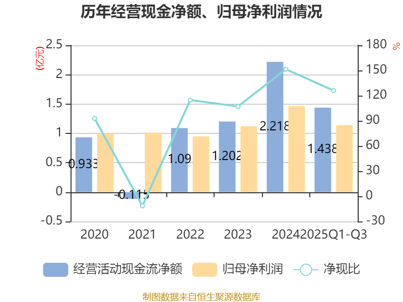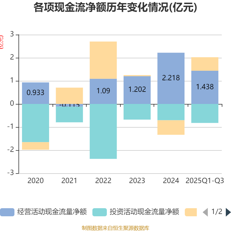 2025年前三季度,公司经营活动现金流净额为1.44亿元,同比下降10.81%;筹资活动现金流净额5853.37万元,同比增加1.43亿元;投资活动现金流净额-8216.75万元,上年同期为-6550.52万元。