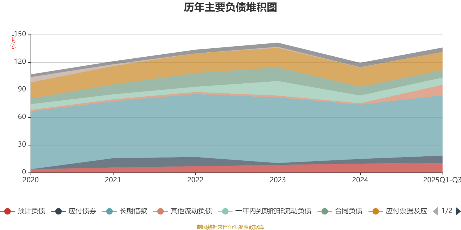 负债重大变化方面,截至2025年三季度末,公司其他流动负债较上年末增加631.15%,占公司总资产比重上升3.71个百分点;应付票据及应付账款较上年末减少5.63%,占公司总资产比重下降1.25个百分点;应付债券较上年末增加59.89%,占公司总资产比重上升0.96个百分点;合同负债较上年末减少14.58%,占公司总资产比重下降0.9个百分点。