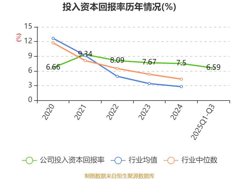 盈利能力方面, 2025年前三季度公司加权平均净资产收益率为9.5%,同比上升0.14个百分点。公司2025年前三季度投入资本回报率为6.59%,较上年同期上升0.26个百分点。