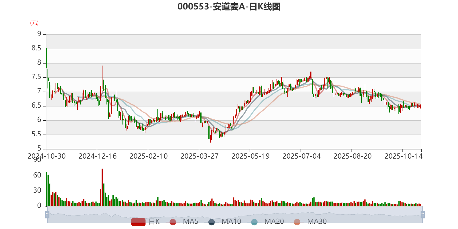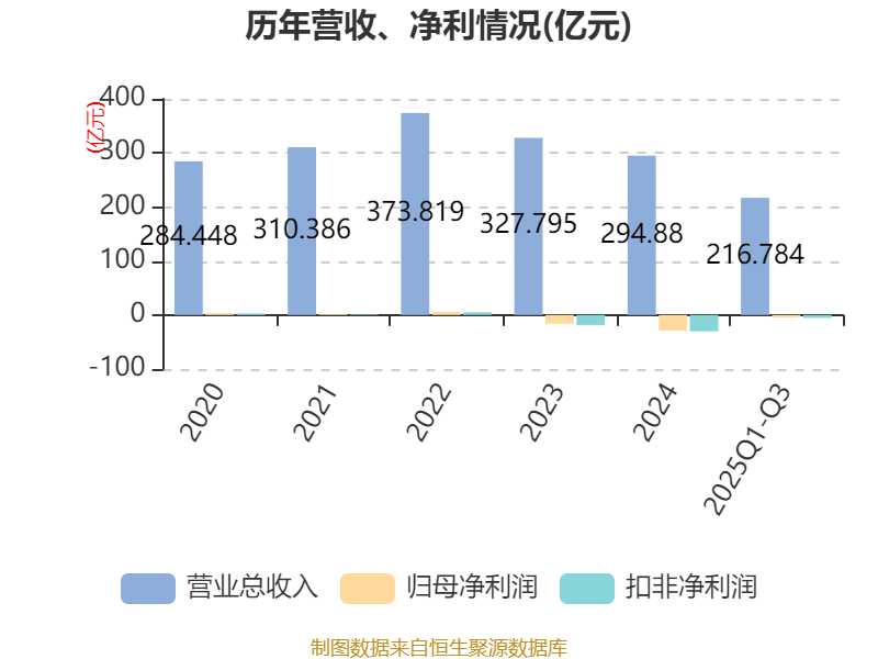 中证智能财讯安道麦A(000553)10月30日披露2025年第三季度报告。前三季度公司实现营业总收入216.78亿元,同比增长0.72%;归母净利润亏损4.23亿元,上年同期亏损18.38亿元;扣非净利润亏损5.22亿元,上年同期亏损19.25亿元;经营活动产生的现金流量净额为23.74亿元,同比下降17.06%;报告期内,安道麦A基本每股收益为-0.1815元,加权平均净资产收益率为-2.26%。