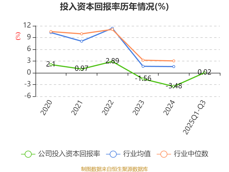 盈利能力方面, 2025年前三季度公司加权平均净资产收益率为-2.26%,同比上升6.45个百分点。公司2025年前三季度投入资本回报率为0.02%,较上年同期上升2.2个百分点。