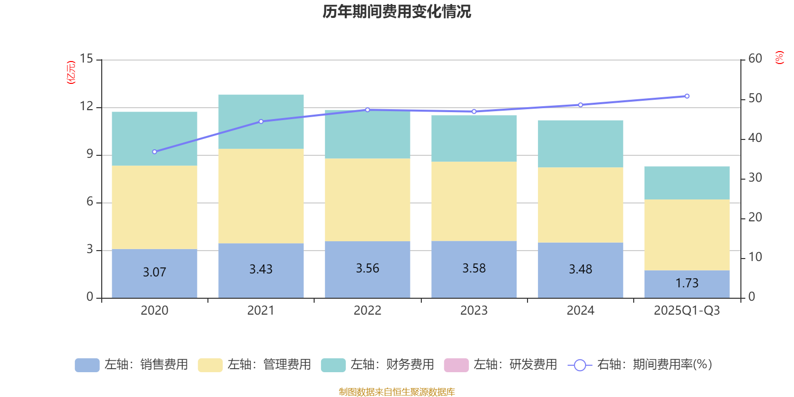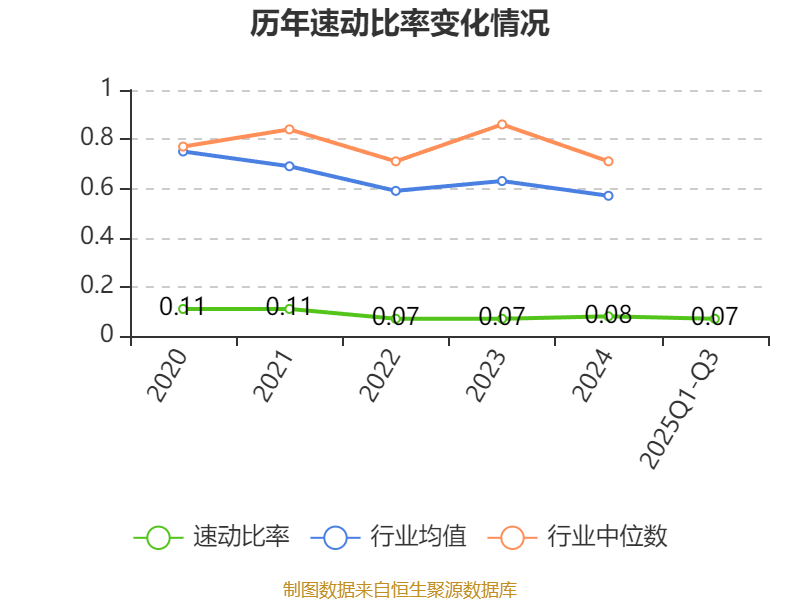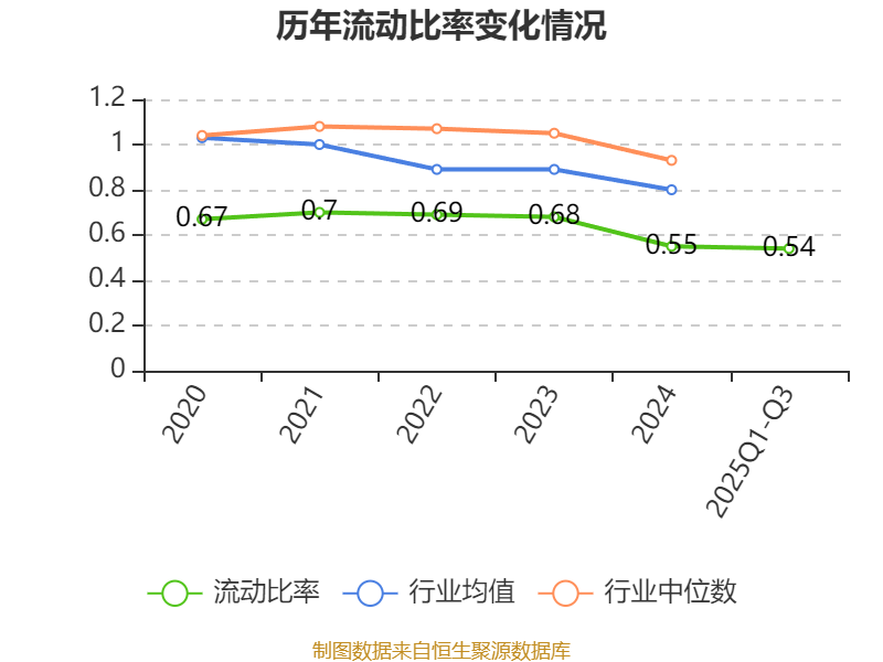 2025年前三季度,公司流动比率为0.54,速动比率为0.07。