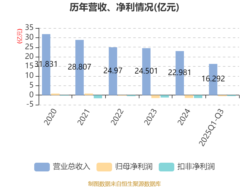 中证智能财讯中央商场(600280)10月30日披露2025年第三季度报告。前三季度公司实现营业总收入16.29亿元,同比下降9.63%;归母净利润亏损5353.79万元,上年同期亏损2561.8万元;扣非净利润亏损4803.51万元,上年同期亏损2137.84万元;经营活动产生的现金流量净额为2.27亿元,同比增长93.35%;报告期内,中央商场基本每股收益为-0.047元,加权平均净资产收益率为-8.19%。
