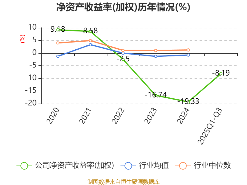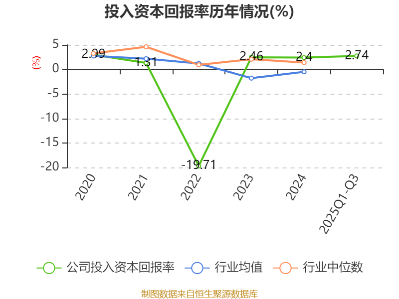 盈利能力方面, 2025年前三季度公司加权平均净资产收益率为-8.19%,同比下降5.09个百分点。公司2025年前三季度投入资本回报率为2.74%,较上年同期上升6.75个百分点。