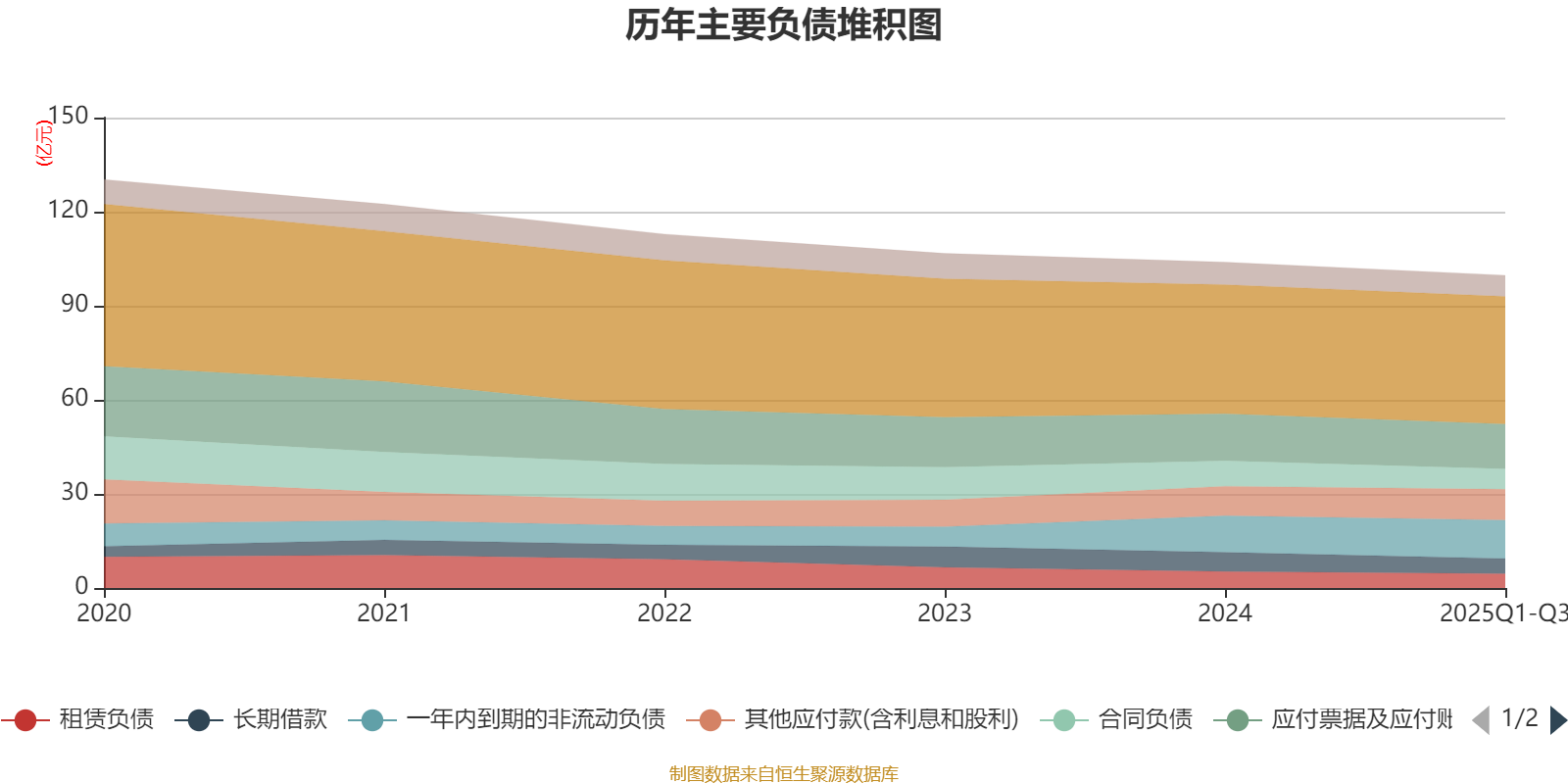负债重大变化方面,截至2025年三季度末,公司短期借款较上年末减少1.04%,占公司总资产比重上升1.34个百分点;合同负债较上年末减少19.23%,占公司总资产比重下降1.12个百分点;一年内到期的非流动负债较上年末增加5.16%,占公司总资产比重上升1.06个百分点;长期借款较上年末减少21.62%,占公司总资产比重下降1个百分点。