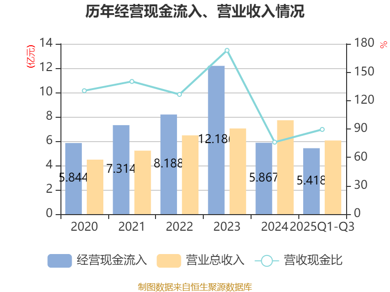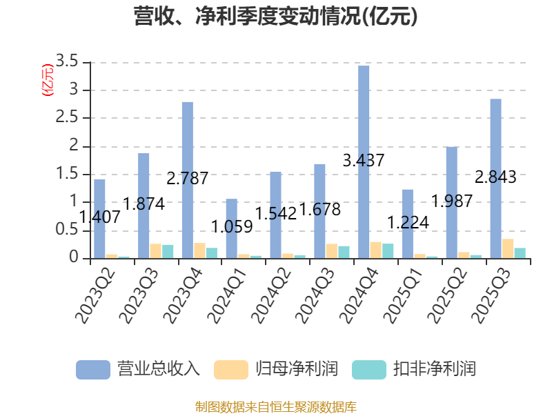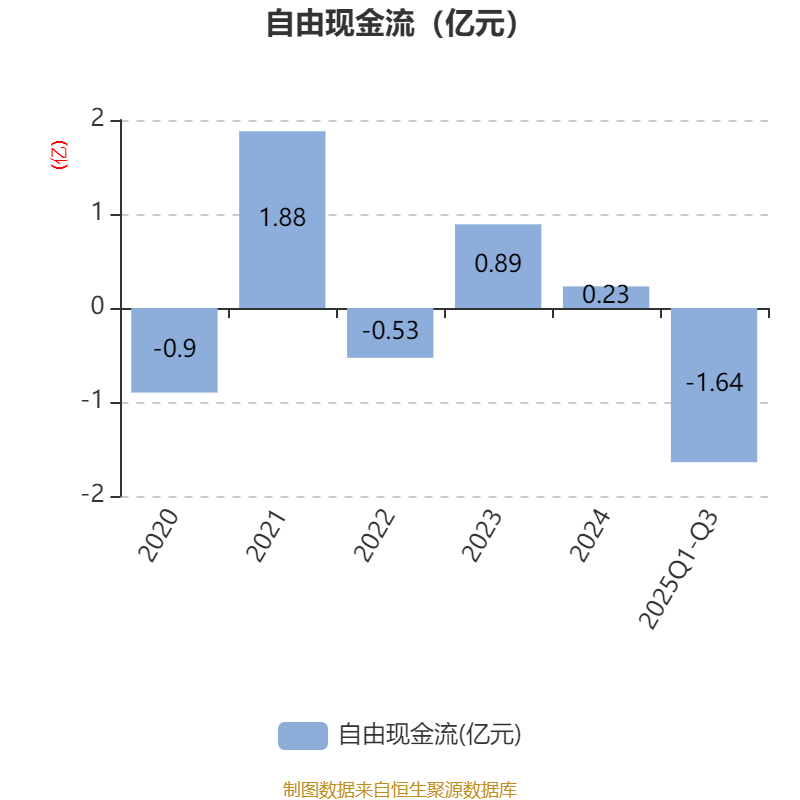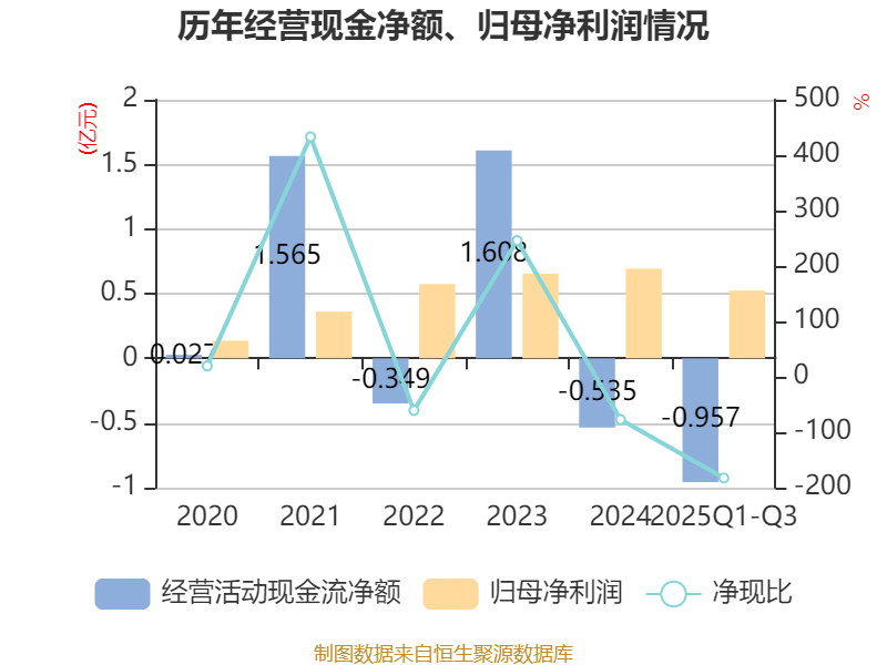2025年前三季度,公司经营活动现金流净额为-9568.54万元,同比增加6168.19万元;筹资活动现金流净额-751.5万元,同比增加3878.42万元;投资活动现金流净额-833.65万元,上年同期为-2251.89万元。