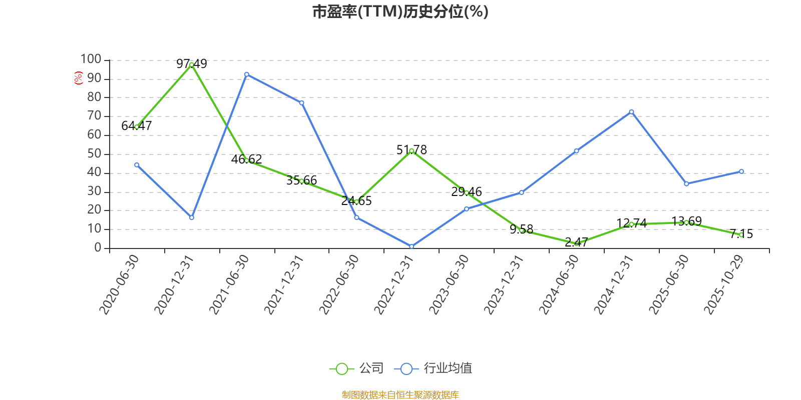 市盈率、市净率为负时,不显示当期分位数,会导致折线图中断。