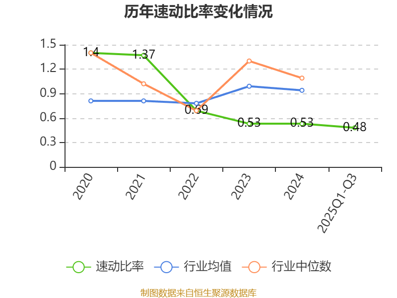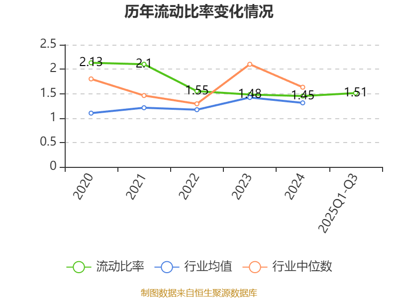 2025年前三季度,公司流动比率为1.51,速动比率为0.48。