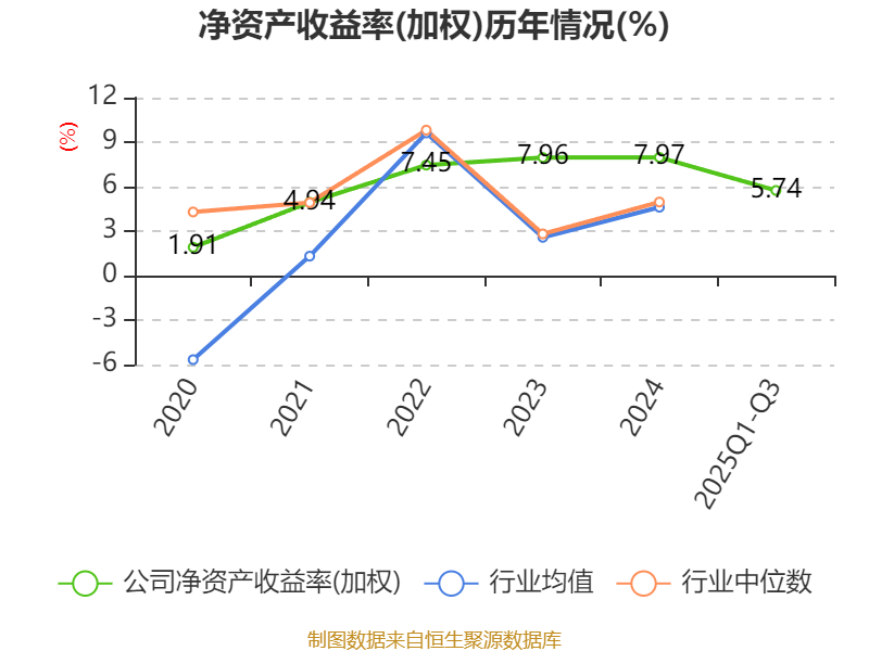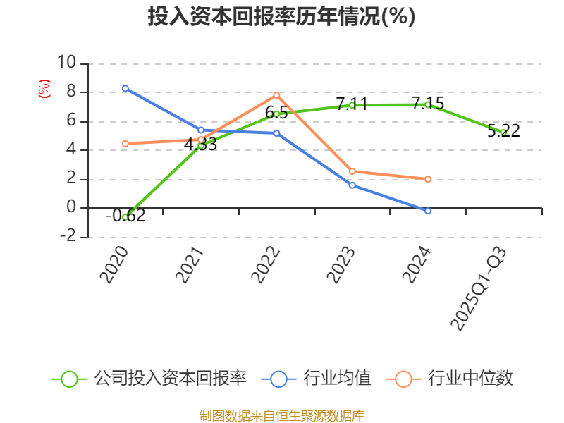 盈利能力方面, 2025年前三季度公司加权平均净资产收益率为5.74%,同比上升1个百分点。公司2025年前三季度投入资本回报率为5.22%,较上年同期上升0.77个百分点。