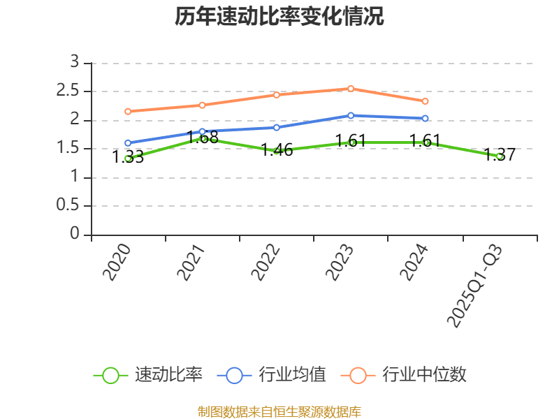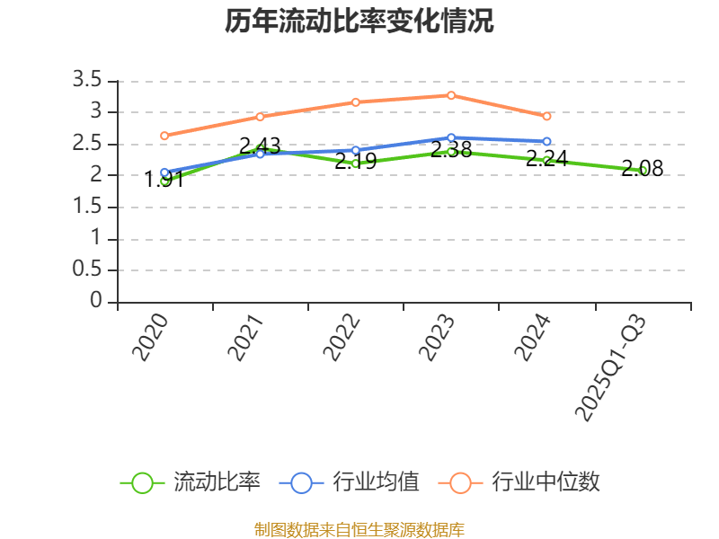 2025年前三季度,公司流动比率为2.08,速动比率为1.37。