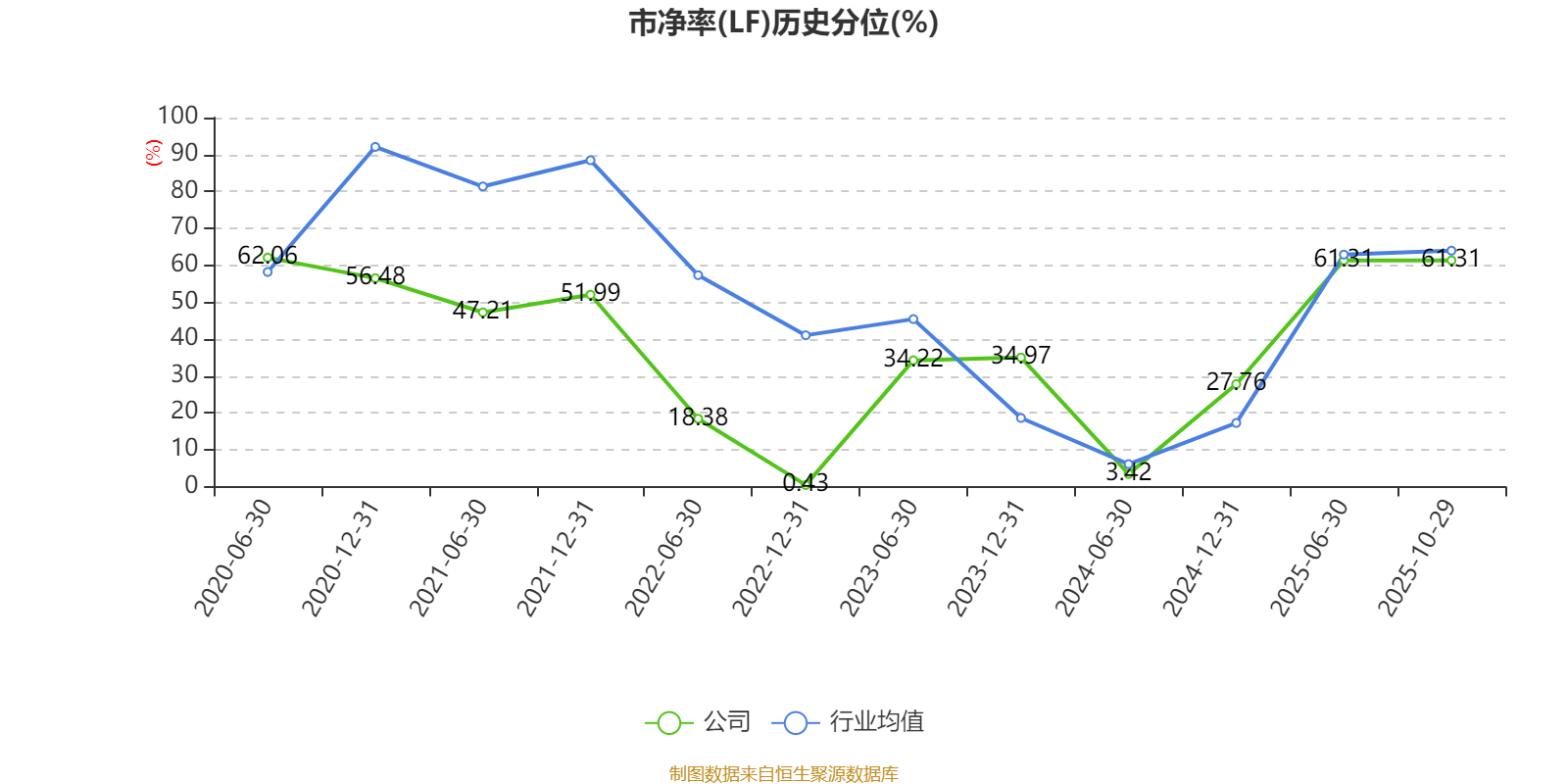 市盈率、市净率为负时,不显示当期分位数,会导致折线图中断。